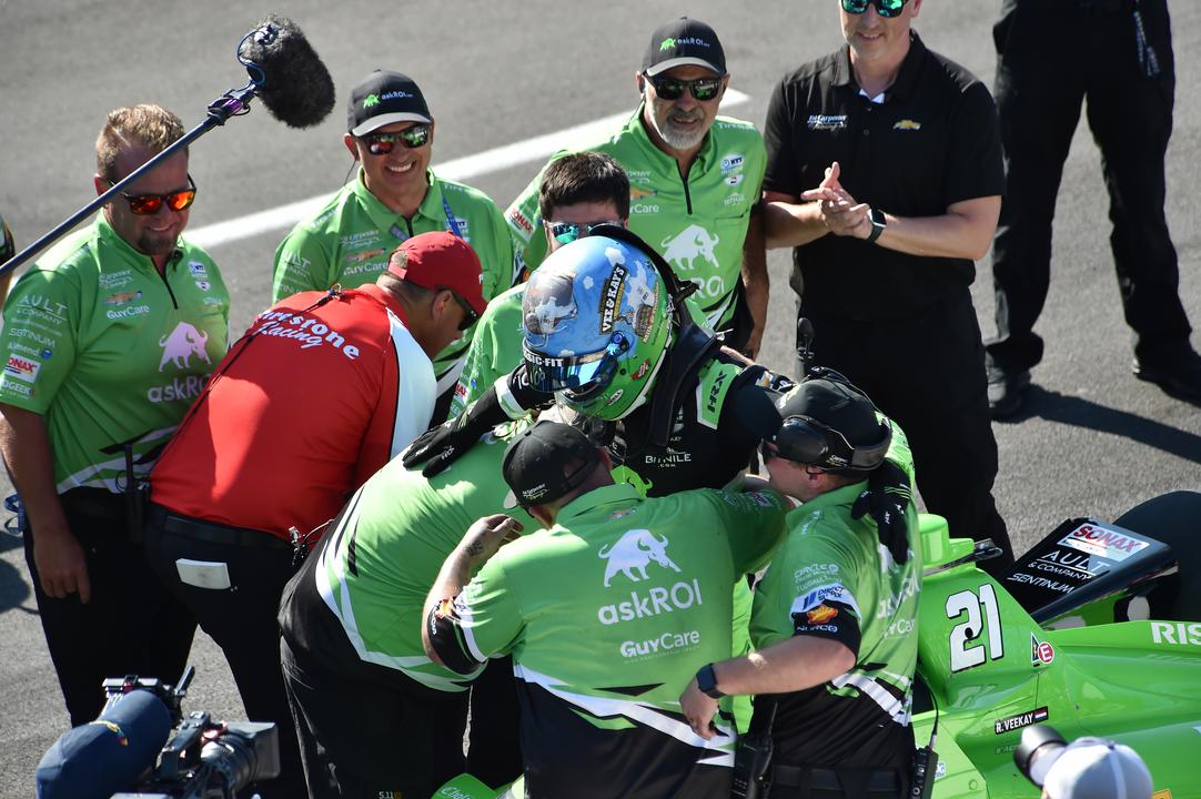 Rinus Veekay of Ed Carpenter Racing made a small correction into turn 3 during his four lap attempt. Due to a little bit of understeer, Veekay crashes into the Turn 3 barrier. Unsure of what caused the issue, Veekay was cleared from medical and his team spent hours to repair his car in order to put up a qualifying time. With just over 2 hours left the team managed to repair his car and set his first official time.