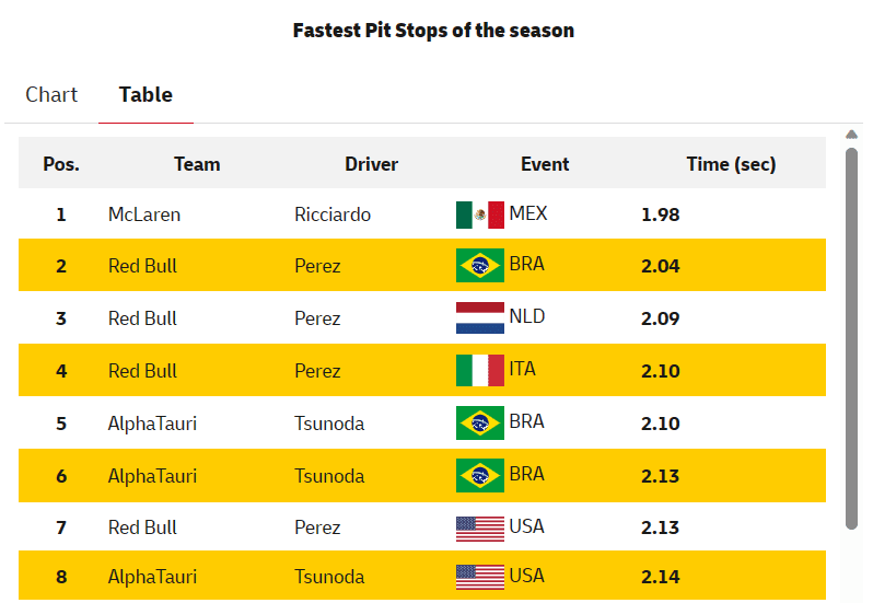 Last season, Daniel Ricciardo and McLaren had set the fastest pitstop during the Mexico Grand Prix, matching the current record of 1.9 seconds. After that, other pitstops in different races took longer, with times exceeding 2.04 seconds, making McLaren the only team to have changed their tires under two seconds.