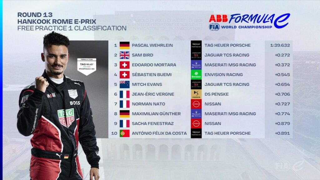 Guenther, who is also familiar with the streets of Rome, briefly took the lead but eventually dropped to third place behind Bird and Wehrlein. Wehrlein benefited from Dennis’ steering column issues and temporarily topped the timesheet, ultimately falling behind.