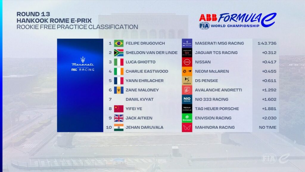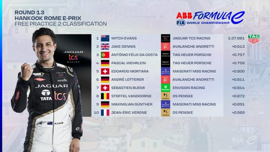 Moving on to Free Practice 1, Evans, who is known as an expert at the track, and is also expected to catch up to the top two drivers in the standings, has a good track record at Rome and previously secured Jaguar’s first win in 2019. He led the timesheets for the first 10 minutes along with his teammate.
