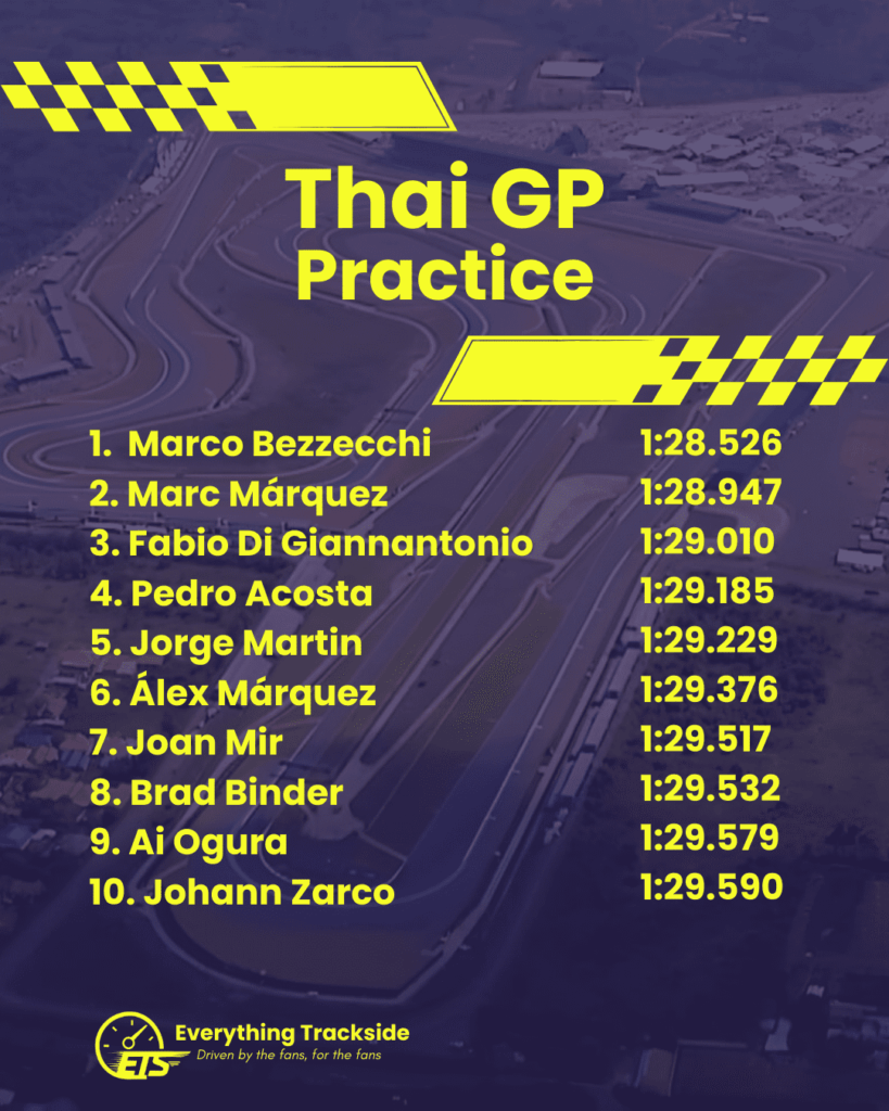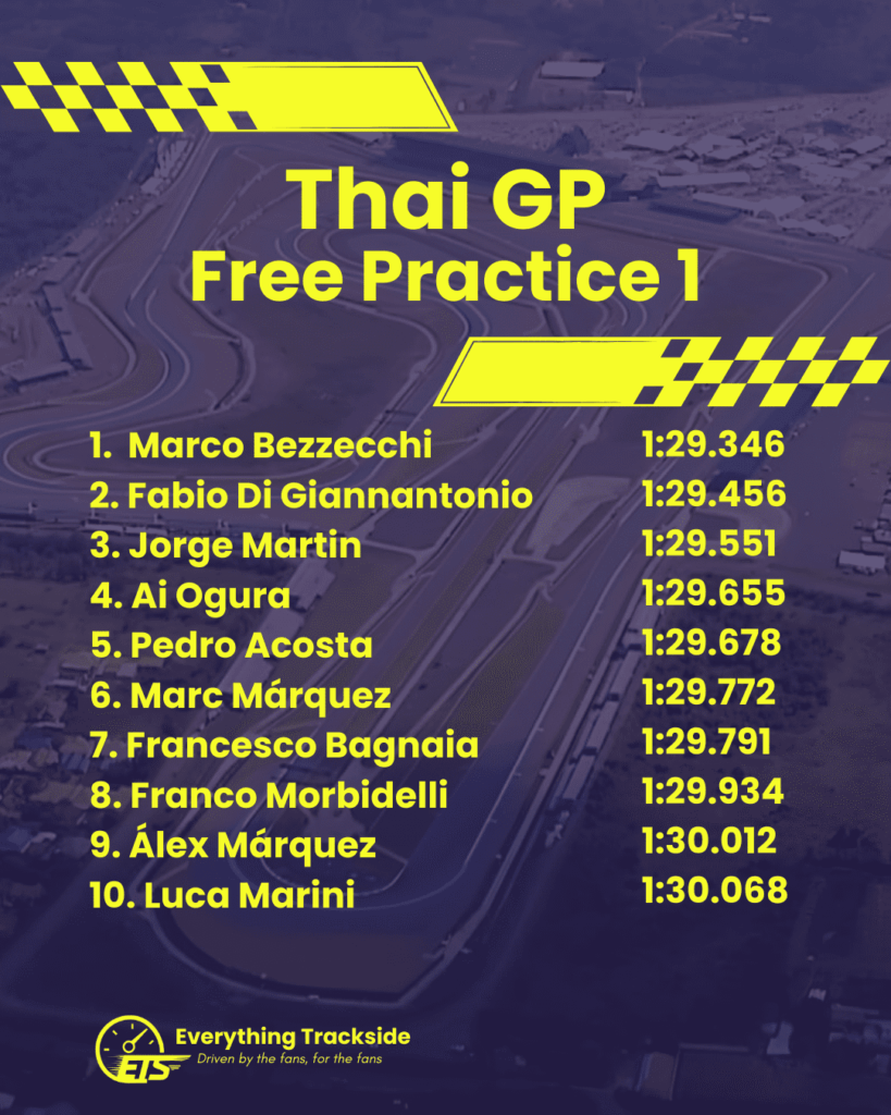As the first day of ThaiGP resulted in Aprilia dominance, there are still two days of sessions to go. While it’s early to tell, this definitely gives hope to Aprilia Racing for their first podium at the Buriram circuit.