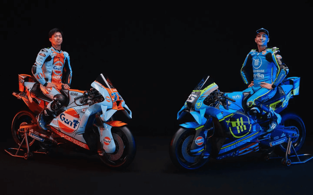 Many were loving the slightly unexpected dual-livery reveal for the American MotoGP team Trackhouse. While the #25 Trackhouse Aprilia RS-GP26 received slight updates, most notably the black wide “stripe” running from front to back, the #75 received a sponsor-specific update for the opener in Thailand. Per the team, the Gulf livery will be flown on the #75 for five rounds in the 2026 season.