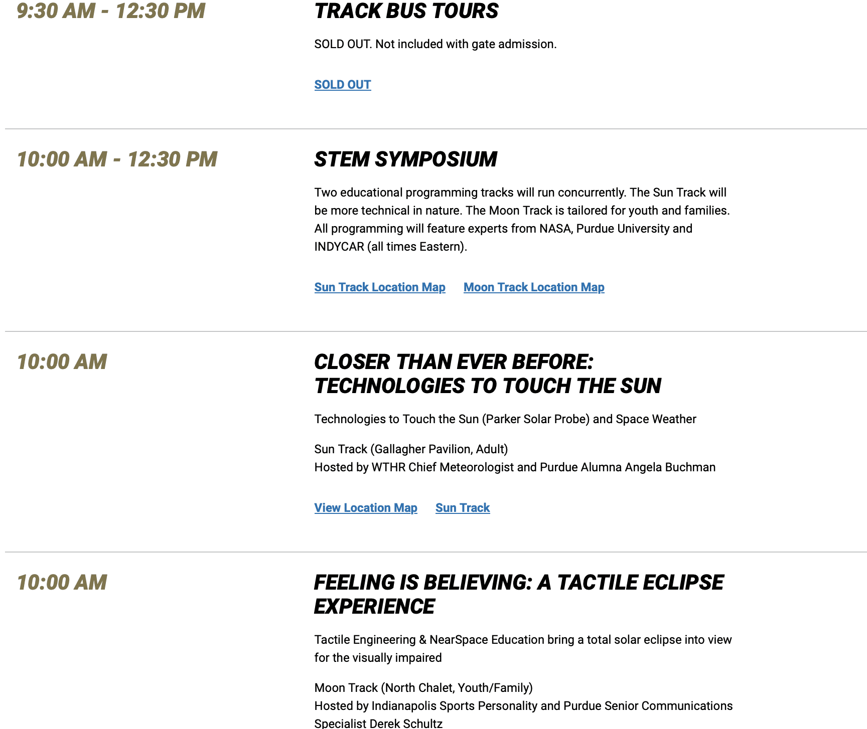 This solar spectacle includes a packed day of educational opportunities. Purdue University, NASA and IMS create a schedule to present a wide range of knowledge surrounding the IMS track, engineering, astronauts and more.