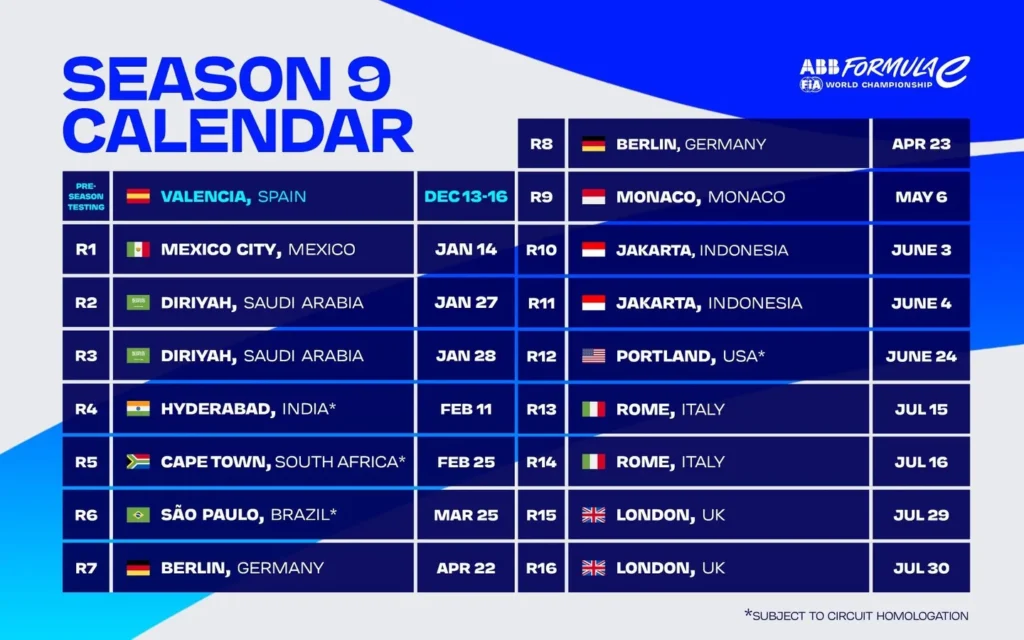 Official Formula E Season 9 Calendar